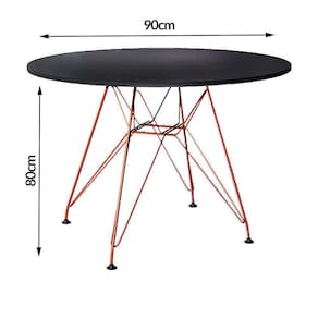 MESA EAMES COBRE TAMPO REDONDO DE MADEIRA PRETO 90 CMA Mesa Eiffel Cobre É a escolha ideal para deixar sua casa muito mais bonita e renovada. Aposte em uma e sinta a diferença no dia a dia! Essa mesa tem em sua estrutura materiais de altÍssima qualidade, que proporciona muito mais resistência, mesmo com o passar dos anos. Ela tem formato redondo e possui espaço para 4 lugares, o que É ideal para um jantar em famÍlia. Ela vem com tampo de madeira na cor preta, o que dÁ mais charme ao ambiente. A mesa É versÁtil e combina com vÁrios tipos de decoração, o que dÁ mais praticidade em casa. Leve para casa uma solução que esbanja estilo, elegância e muito requinte.Mesa Eames Cobre Tampo Redondo de Madeira Preto 90 Cm