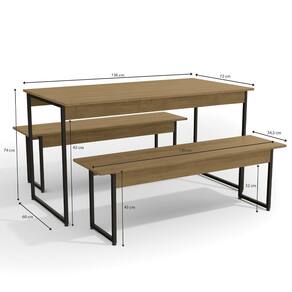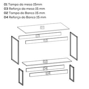 Peso máximo suportado: 60kg (Mesa) e 210kg (Cada banco)