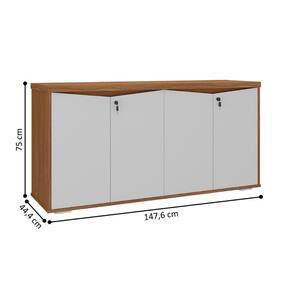 O Balcão segue o mesmo layout e mesma qualidade. Com 4 portas, uma prateleira fixa a cada duas portas, chaves para travamento, e traseira revestida para utilizar em qualquer posição