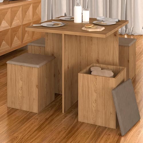 O Conjunto Sala de Jantar com 4 Banquetas Berlim, perfeito para reunir a família e os amigos ao redor de uma mesa sofisticada e elegante.