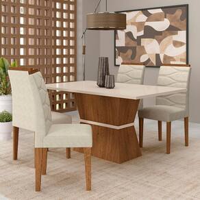 Mesa Com 4 Cadeiras 1,36 Antália Freijó/off Premium/suede Bege - M.a