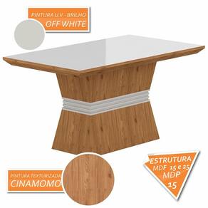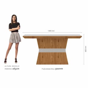 O Conjunto Sala de Jantar 4 Cadeiras Versalhes é perfeito para reunir a família e os amigos ao redor de uma mesa sofisticada e elegante.Detalhes Técnicos da Mesa:- Acabamento da Mesa: Pintura Texturizada- Tipo de Pintura: UV Texturizada - P.U- Borda da Mesa: P.U- Quantidade de Lugares: 04- Material da Base da Mesa: MDP/MDF- Material do Tampo: MDF- Tipo de Tampo: MDF- Medida da Base: A: 78,5CM x L: 90CM x P: 45CM- Medida do Tampo: L: 90CM x C:136CM- NÃO POSSUI TAMPO DE VIDRO- Medida da Mesa Montada: A: 80CM x L:136CM x P:90CM- Possui Suporte Giratório: Não- Formato: Retangular- Tonalidade do Tampo: Off White- Tonalidade da base da mesa: CinamomoDetalhes Técnicos das Cadeiras:- Acabamento da Cadeira: Pintura com Assento e Encosto Tapeçados- Almofada do Assento: Fixa- Cadeira Estofada: Sim- Peso Suportado da Cadeira: 90 KG- Facilidade da Montagem: Média- Tonalidade da estrutura da Cadeira: Cinamomo- Tonalidade do Tecido: Suede Capuccino- Espuma do Assento: D 23- Espuma do Encosto: D 16- Tipo de Pintura: UV Texturizada- Material da Estrutura: 100% MDF 25 e 18 mm- Medida da Cadeira/ Banco: 100CM x 44CM x 50CMConteúdo da Embalagem:- 01 Sala de Jantar- Plástico protetor- Caixa papelão- Manual de Montagem- Acessório para MontagemObservações Importantes:- Evitar a exposição direta à luz solar e à umidade;- Para limpeza, limpar com pano macio e seco, não utilizar qualquer outro tipo de produtos químicos;- As imagens ambientadas são meramente ilustrativas e podem apresentar itens que não incorporam o produto;- Objetos decorativos que aparecem na foto não acompanham o produto;- As cores do produto podem variar de acordo com o monitor, a iluminação do ambiente ou sua percepção visual;