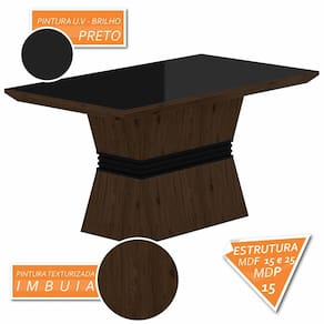 O Conjunto Sala de Jantar 4 Cadeiras Versalhes é perfeito para reunir a família e os amigos ao redor de uma mesa sofisticada e elegante.Detalhes Técnicos da Mesa:- Acabamento da Mesa: Pintura Texturizada- Tipo de Pintura: UV Texturizada - P.U- Borda da Mesa: P.U- Quantidade de Lugares: 04- Material da Base da Mesa: MDP/MDF- Material do Tampo: MDF- Tipo de Tampo: MDF- Medida da Base: A: 78,5CM x L: 90CM x P: 45CM- Medida do Tampo: L: 90CM x C:136CM- NÃO POSSUI TAMPO DE VIDRO- Medida da Mesa Montada: A: 80CM x L:136CM x P:90CM- Possui Suporte Giratório: Não- Formato: Retangular- Tonalidade do Tampo: Preto- Tonalidade da base da mesa: ImbuiaDetalhes Técnicos das Cadeiras:- Acabamento da Cadeira: Pintura com Assento e Encosto Tapeçados- Almofada do Assento: Fixa- Cadeira Estofada: Sim- Peso Suportado da Cadeira: 90 KG- Facilidade da Montagem: Média- Tonalidade da estrutura da Cadeira: Imbuia- Tonalidade do Tecido: Suede Marrom- Espuma do Assento: D 23- Espuma do Encosto: D 16- Tipo de Pintura: UV Texturizada- Material da Estrutura: 100% MDF 25 e 18 mm- Medida da Cadeira/ Banco: 100CM x 44CM x 50CMConteúdo da Embalagem:- 01 Sala de Jantar- Plástico protetor- Caixa papelão- Manual de Montagem- Acessório para MontagemObservações Importantes:- Evitar a exposição direta à luz solar e à umidade;- Para limpeza, limpar com pano macio e seco, não utilizar qualquer outro tipo de produtos químicos;- As imagens ambientadas são meramente ilustrativas e podem apresentar itens que não incorporam o produto;- Objetos decorativos que aparecem na foto não acompanham o produto;- As cores do produto podem variar de acordo com o monitor, a iluminação do ambiente ou sua percepção visual;