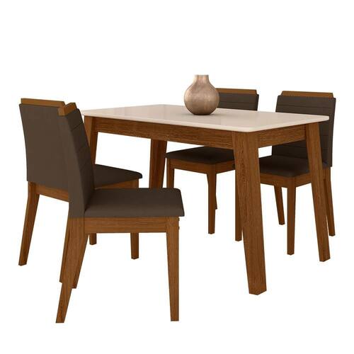 A Mesa Argélia com 4 Cadeiras traz um visual clássico e minimalista, perfeito para transformar sua sala de jantar em um ambiente acolhedor e repleto de elegância!