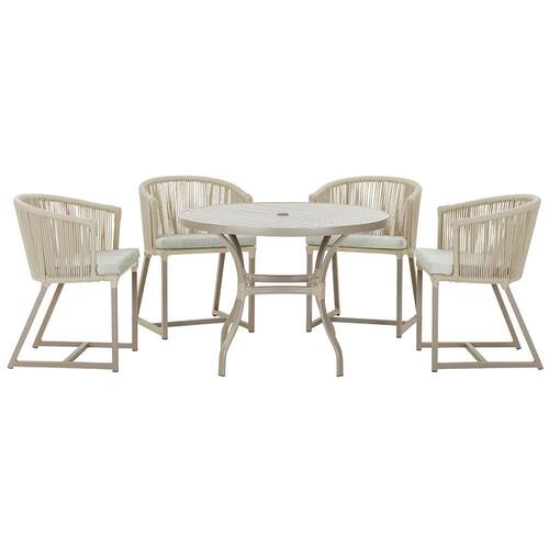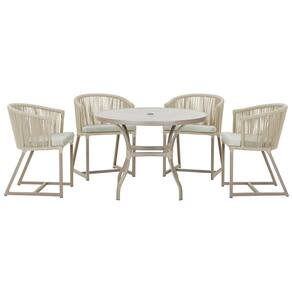 Mesa com 4 Cadeiras de Jantar Roma 100cm e Noronha em Aluminío - Bege Médio