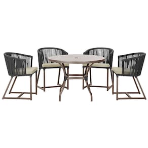 Descubra a Elegância e Durabilidade da Mesa de Jantar Roma e Cadeiras Noronha. Combinando estilo e resistência, esta Mesa e cadeiras traz o melhor do design contemporâneo em alumínio com micro pintura e acabamento em corda náutica. O estofado impermeável completa o conforto e a funcionalidade, tornando-a ideal para ambientes externos e internos.