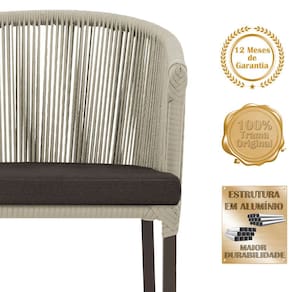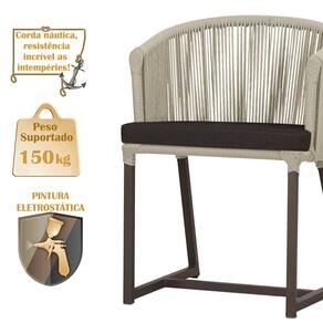 Descubra a Elegância e Durabilidade da Mesa de Jantar Roma e Cadeiras Noronha. Combinando estilo e resistência, esta Mesa e cadeiras traz o melhor do design contemporâneo em alumínio com micro pintura e acabamento em corda náutica. O estofado impermeável completa o conforto e a funcionalidade, tornando-a ideal para ambientes externos e internos.