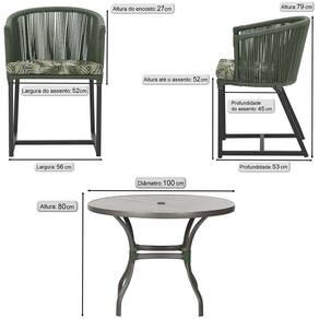 Mesa com 4 Cadeiras de Jantar Roma 100cm e Noronha em Aluminío - Verde Musgo