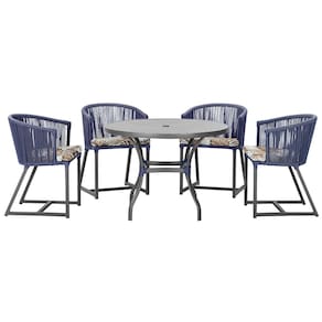 Mesa com 4 Cadeiras de Jantar Roma 100cm e Noronha em Aluminío - Azul
