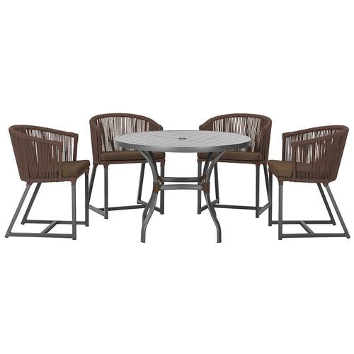 Mesa com 4 Cadeiras de Jantar Roma 100cm e Noronha em Aluminío - Marrom Escuro