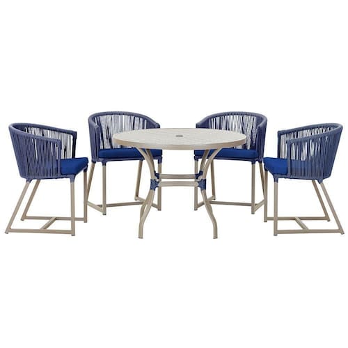 Produto conhecido como: mesa e cadeiras, Jogo de jantar, Estofado impermeavel, Moveis de exterior, Cadeira resistente a agua, Cadeira estofada, Cadeira para area externa, Cadeira de jardim, Moveis para varanda, Cadeira duravel, Cadeira de alta qualidade, Conforto em Cadeira, Cadeira elegante