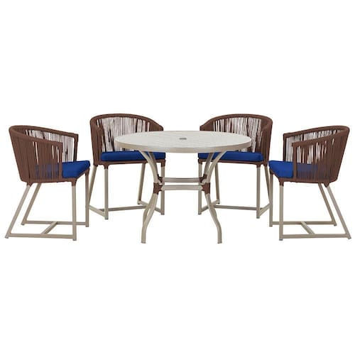 Produto conhecido como: mesa e cadeiras, Jogo de jantar, Estofado impermeavel, Moveis de exterior, Cadeira resistente a agua, Cadeira estofada, Cadeira para area externa, Cadeira de jardim, Moveis para varanda, Cadeira duravel, Cadeira de alta qualidade, Conforto em Cadeira, Cadeira elegante