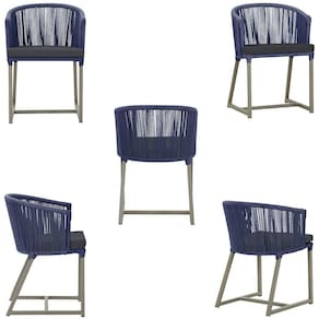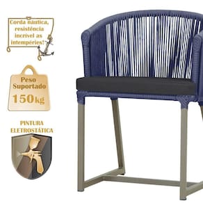 Descubra a Elegancia e Durabilidade da Mesa de Jantar Roma e Cadeiras Noronha. Combinando estilo e resistencia, esta Mesa e cadeiras traz o melhor do design contemporaneo em aluminio com micro pintura e acabamento em corda nautica. O estofado impermeavel completa o conforto e a funcionalidade, tornando-a ideal para ambientes externos e internos.