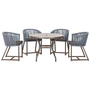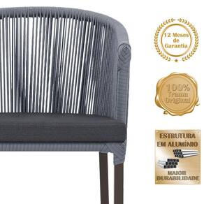 Descubra a Elegancia e Durabilidade da Mesa de Jantar Roma e Cadeiras Noronha. Combinando estilo e resistencia, esta Mesa e cadeiras traz o melhor do design contemporaneo em aluminio com micro pintura e acabamento em corda nautica. O estofado impermeavel completa o conforto e a funcionalidade, tornando-a ideal para ambientes externos e internos.