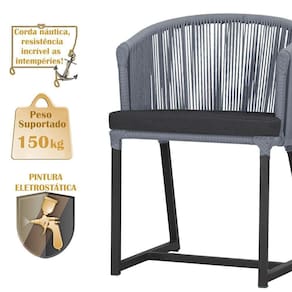 Descubra a Elegancia e Durabilidade da Mesa de Jantar Roma e Cadeiras Noronha. Combinando estilo e resistencia, esta Mesa e cadeiras traz o melhor do design contemporaneo em aluminio com micro pintura e acabamento em corda nautica. O estofado impermeavel completa o conforto e a funcionalidade, tornando-a ideal para ambientes externos e internos.