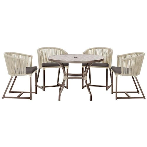 Produto conhecido como: mesa e cadeiras, Jogo de jantar, Estofado impermeavel, Moveis de exterior, Cadeira resistente a agua, Cadeira estofada, Cadeira para area externa, Cadeira de jardim, Moveis para varanda, Cadeira duravel, Cadeira de alta qualidade, Conforto em Cadeira, Cadeira elegante