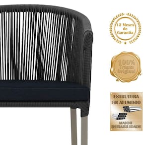 Descubra a Elegancia e Durabilidade da Mesa de Jantar Roma e Cadeiras Noronha. Combinando estilo e resistencia, esta Mesa e cadeiras traz o melhor do design contemporaneo em aluminio com micro pintura e acabamento em corda nautica. O estofado impermeavel completa o conforto e a funcionalidade, tornando-a ideal para ambientes externos e internos.