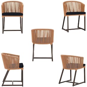 Descubra a Elegancia e Durabilidade da Mesa de Jantar Roma e Cadeiras Noronha. Combinando estilo e resistencia, esta Mesa e cadeiras traz o melhor do design contemporaneo em aluminio com micro pintura e acabamento em corda nautica. O estofado impermeavel completa o conforto e a funcionalidade, tornando-a ideal para ambientes externos e internos.