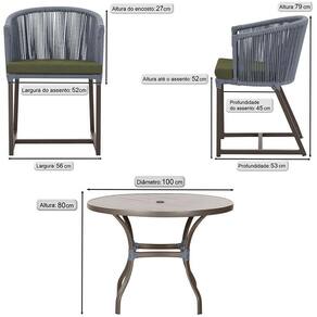 Descubra a Elegancia e Durabilidade da Mesa de Jantar Roma e Cadeiras Noronha. Combinando estilo e resistencia, esta Mesa e cadeiras traz o melhor do design contemporaneo em aluminio com micro pintura e acabamento em corda nautica. O estofado impermeavel completa o conforto e a funcionalidade, tornando-a ideal para ambientes externos e internos.