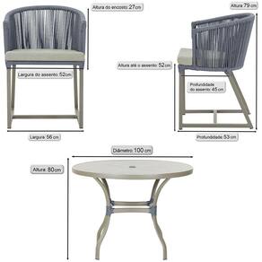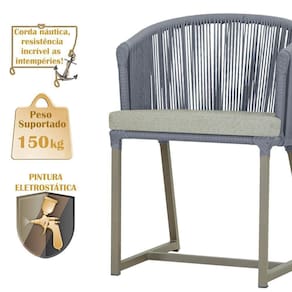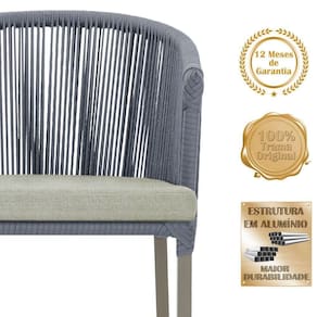 Descubra a Elegancia e Durabilidade da Mesa de Jantar Roma e Cadeiras Noronha. Combinando estilo e resistencia, esta Mesa e cadeiras traz o melhor do design contemporaneo em aluminio com micro pintura e acabamento em corda nautica. O estofado impermeavel completa o conforto e a funcionalidade, tornando-a ideal para ambientes externos e internos.