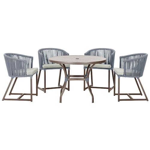 Produto conhecido como: mesa e cadeiras, Jogo de jantar, Estofado impermeavel, Moveis de exterior, Cadeira resistente a agua, Cadeira estofada, Cadeira para area externa, Cadeira de jardim, Moveis para varanda, Cadeira duravel, Cadeira de alta qualidade, Conforto em Cadeira, Cadeira elegante