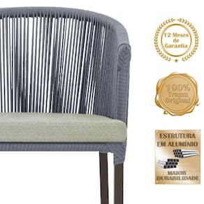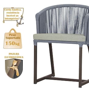 Descubra a Elegancia e Durabilidade da Mesa de Jantar Roma e Cadeiras Noronha. Combinando estilo e resistencia, esta Mesa e cadeiras traz o melhor do design contemporaneo em aluminio com micro pintura e acabamento em corda nautica. O estofado impermeavel completa o conforto e a funcionalidade, tornando-a ideal para ambientes externos e internos.