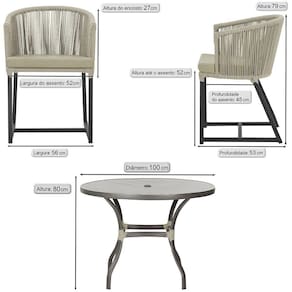 Descubra a Elegancia e Durabilidade da Mesa de Jantar Roma e Cadeiras Noronha. Combinando estilo e resistencia, esta Mesa e cadeiras traz o melhor do design contemporaneo em aluminio com micro pintura e acabamento em corda nautica. O estofado impermeavel completa o conforto e a funcionalidade, tornando-a ideal para ambientes externos e internos.