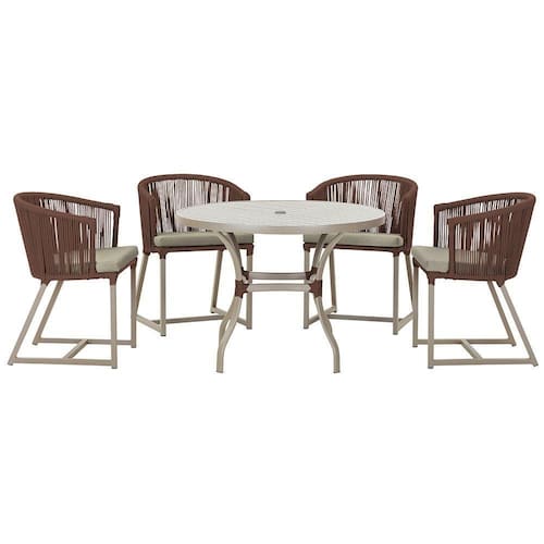 Produto conhecido como: mesa e cadeiras, Jogo de jantar, Estofado impermeavel, Moveis de exterior, Cadeira resistente a agua, Cadeira estofada, Cadeira para area externa, Cadeira de jardim, Moveis para varanda, Cadeira duravel, Cadeira de alta qualidade, Conforto em Cadeira, Cadeira elegante