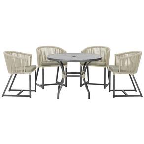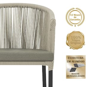 Descubra a Elegancia e Durabilidade da Mesa de Jantar Roma e Cadeiras Noronha. Combinando estilo e resistencia, esta Mesa e cadeiras traz o melhor do design contemporaneo em aluminio com micro pintura e acabamento em corda nautica. O estofado impermeavel completa o conforto e a funcionalidade, tornando-a ideal para ambientes externos e internos.