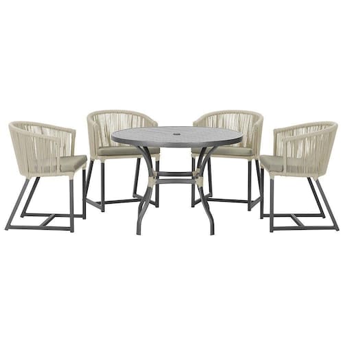 Produto conhecido como: mesa e cadeiras, Jogo de jantar, Estofado impermeavel, Moveis de exterior, Cadeira resistente a agua, Cadeira estofada, Cadeira para area externa, Cadeira de jardim, Moveis para varanda, Cadeira duravel, Cadeira de alta qualidade, Conforto em Cadeira, Cadeira elegante