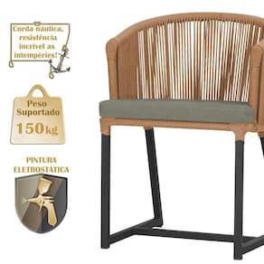 Descubra a Elegancia e Durabilidade da Mesa de Jantar Roma e Cadeiras Noronha. Combinando estilo e resistencia, esta Mesa e cadeiras traz o melhor do design contemporaneo em aluminio com micro pintura e acabamento em corda nautica. O estofado impermeavel completa o conforto e a funcionalidade, tornando-a ideal para ambientes externos e internos.