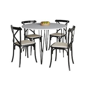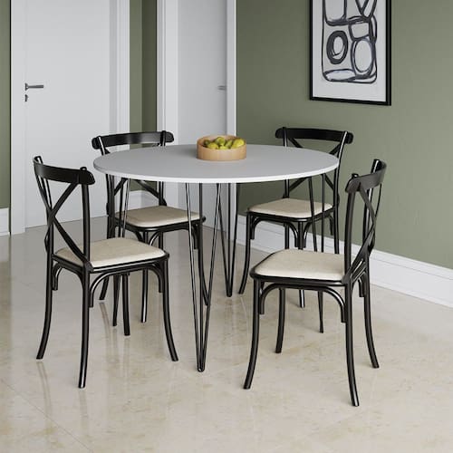 Mesa Com 4 Cadeiras Katrina Preta Elen Hairpin 110cm Jantar Branca Com Ferro Preto