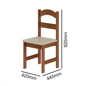 Características das cadeiras: - Material MDF e MDP - Assento MDP revestido com corvim na cor bege - Assento com espuma D16 - Pintura/Acabamento: Semi-Brilho - Grossura dos pés 5x6 cm - Não possui sapatas - Suporte de peso: 100 kg cada