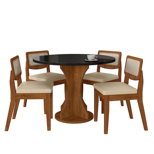 Transforme sua sala de jantar com conjunto Santorini, tampo de vidro e 4 cadeiras confortáveis. Ideal para quem busca praticidade no dia a dia, o tampo de vidro é resistente e traz um toque moderno ao ambiente.