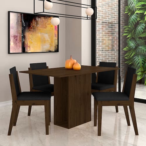 O Conjunto Sala de Jantar Samoa 4 Cadeiras Oslo é sofisticada tornando seu ambiente mais agradável.Detalhes Técnicos da Mesa:- Acabamento da Mesa: Pintura Texturizada- Tipo de Pintura: UV Texturizada - P.U- Borda da Mesa: P.U- Quantidade de Lugares: 04- Material da Base da Mesa: MDP- Material do Tampo: MDP- Tipo de Tampo: Retangular MDP Pintura Texturizada-Tonalidade da Mesa: Imbuia- Espessura do Tampo:15 mm- Medida da Base: 78CM x 70CM x 35CM- Medida do Tampo: 104CM x 68CM x 15CM- Medida da Mesa Montada: (A x C x P) 80CM x 104CM x 68CM- Possui Suporte Giratório: Não- Formato: Retangular- Garantia do Fornecedor: 3 MesesDetalhes Técnicos das Cadeiras:- Acabamento da Cadeira: Pintura com Assento Estofado- Almofada do Assento: Fixa- Cadeira Estofada: Sim (Assento)- Peso Suportado da Cadeira: 90 KG- Facilidade da Montagem: Média- Deve ser montada por um Profissional- Tonalidade: Imbuia (Estrutura)/ Suede Preto (Assento e Encosto)- Espuma do Assento: D 23- Tipo de Pintura: UV Texturizada- Material da Estrutura: 100% MDF 25 e 18 mm- Revestimento da Cadeira: Suede- Medida da Cadeira/ Banco: 95CM x 40CM x 45CMConteúdo da Embalagem:- 01 Sala de Jantar- Manual de Montagem- Acessório para MontagemObservações Importantes:- Evitar a exposição direta à luz solar e à umidade;- Para limpeza, limpar com pano macio e seco, não utilizar qualquer outro tipo de produtos químicos;- As imagens ambientadas são meramente ilustrativas e podem apresentar itens que não incorporam o produto;- Objetos decorativos que aparecem na foto não acompanham o produto;- As cores do produto podem variar de acordo com o monitor, a iluminação do ambiente ou sua percepção visual;PERGUNTAS FREQUENTES1 - O produto é novo ou usado?R.: Todos os nossos produtos são novos e acompanham NOTA FISCAL.2 – O produto vem montado? Vocês realizam a montagem?R.: - Os móveis são entregues desmontados e com manual de montagem. MONTAGENS, DESMONTAGENS e INSTALAÇÕES devem ser contratado um montador profissional pelo CLIENTE.3 – Os produtos possuem garantia?R.: Sim, todos os nossos produtos possuem garantia de 3 meses, essa garantia cobre somente defeitos de fabricação. Esta garantia não cobre defeitos por uso inadequado ou abusivo, falta de cuidados e desbotamento natural dos revestimentos.4 – Como é realizada a entrega?R.: Enviamos para diversos estados, sendo assim nossas entregas são realizadas por transportadoras parceiras de nossa empresa. Confira as dimensões antes da compra e certifique-se de que o produto passará por elevadores, portas e corredores já que nossa entrega não inclui a subida de lances de escada, transporte por elevador e o lançamento de produtos, em caso de condomínios residenciais a entrega é feita somente até a portaria. Todas as entregas são realizadas em dias e horários comerciais.5 – O que devo verificar no ato da entrega do produto?R.: Observe se a embalagem se encontra em perfeitas condições. Se você adquiriu algum móvel, confira atentamente a quantidade de volumes e o aspecto físico das embalagens. Confira também se a cor do móvel está de acordo com o seu pedido.6 – Vocês entregam para todo o país?R.: Para verificar se enviamos à sua região, basta ir ao campo de cálculo de entrega e colocar seu CEP assim é possível visualizar se entregamos, o valor e o prazo para o transporte até a sua cidade!7 – Quando houver necessidade de desmontagens para efetuar a troca ou devolução, os custos de tais serviços serão ressarcidos?R.: Não, os custos de DESMONTAGENS sempre serão por conta do CLIENTE!.