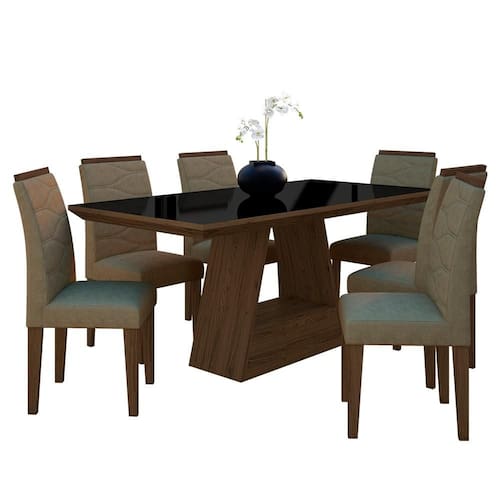O Conjunto Sala de Jantar Ávila + 6 Cadeiras Vitória, com um design moderno é perfeita para reunir as pessoas queridas com essa mesa sofisticada e elegante!