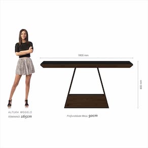 Detalhes Técnicos da Mesa - Acabamento:Pintura UV Texturizada -Borda da Mesa:P.U -Material Base:MDP -Material Tampo:MDF -Medida Base:78,5CMx90CMx35CM -Medida Montada:90CMx160CMx80CM -Tonalidade da Mesa:Imbuia/Preto