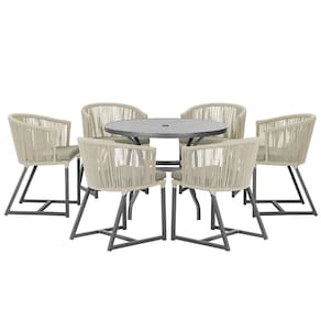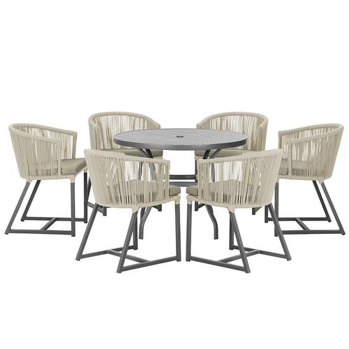 Mesa com 6 Cadeiras de Jantar Roma 120cm e Noronha em Alumínio - Bege Médio