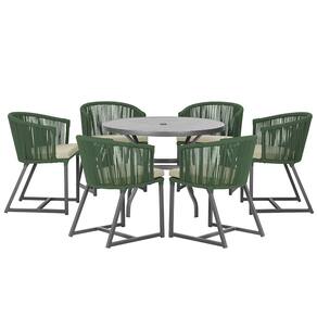 Mesa com 6 Cadeiras de Jantar Roma 120cm e Noronha em Alumínio - Verde Musgo