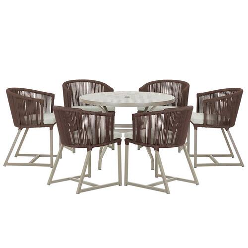 Mesa com 6 Cadeiras de Jantar Roma 120cm e Noronha em Alumínio - Marrom Escuro