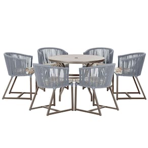 Mesa com 6 Cadeiras de Jantar Roma 120cm e Noronha em Alumínio - Prata