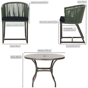 Fotos meramente ilustrativas. Tonalidades podem variar dependendo do monitor. Os objetos que ambientam as Fotos não acompanham o produto. Antes de comprar o seu produto verifique as medidas, o local onde pretende instalar e se necessário contratar o serviço de um profissional qualificado. Produto conhecido como: mesa e cadeiras, Jogo de jantar, Estofado impermeável, Móveis de exterior, Cadeira resistente à água, Cadeira estofada, Cadeira para área externa, Cadeira de jardim, Móveis para varanda, Cadeira durável, Cadeira de alta qualidade, Conforto em Cadeira, Cadeira elegante.