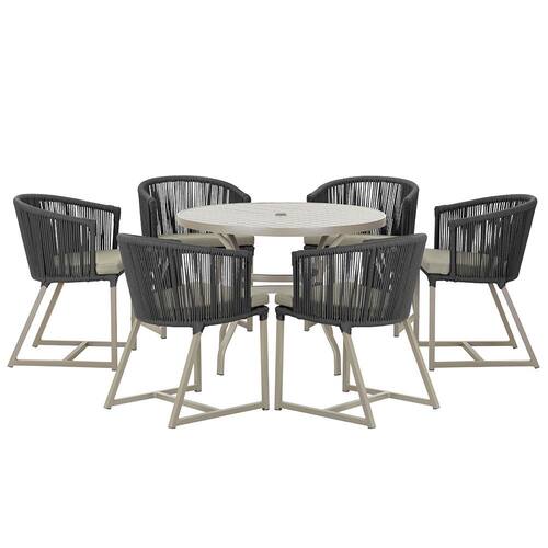Combinando estilo e resistência, esta Mesa e cadeiras traz o melhor do design contemporâneo em alumínio com micro pintura e acabamento em corda náutica. O Estofado impermeável completa o conforto e a funcionalidade, tornando-a ideal para ambientes externos e internos.