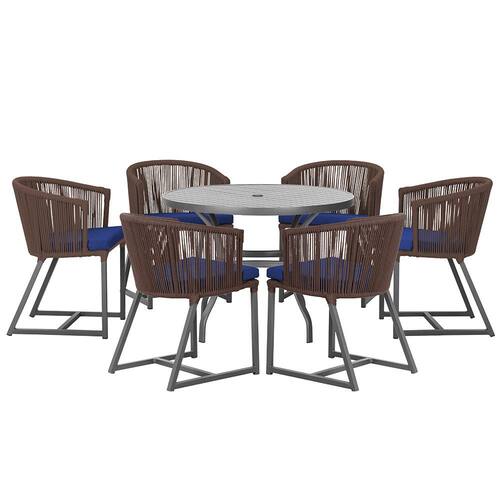 Mesa com 6 Cadeiras de Jantar Roma 120cm e Noronha em Alumínio - Marrom Escuro