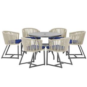 Mesa com 6 Cadeiras de Jantar Roma 120cm e Noronha em Alumínio - Bege Médio