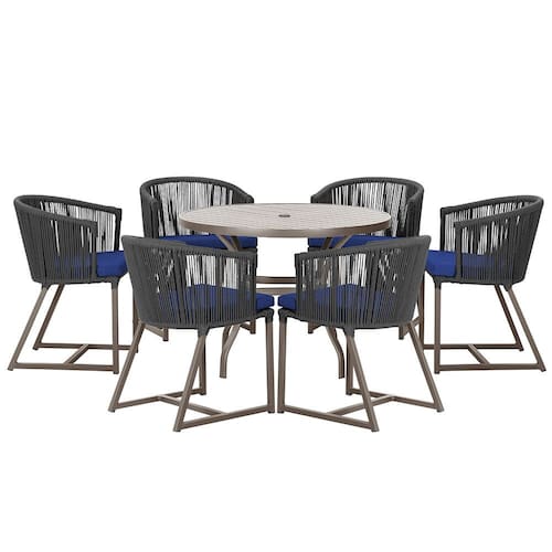 Combinando estilo e resistência, esta Mesa e cadeiras traz o melhor do design contemporâneo em alumínio com micro pintura e acabamento em corda náutica. O Estofado impermeável completa o conforto e a funcionalidade, tornando-a ideal para ambientes externos e internos.