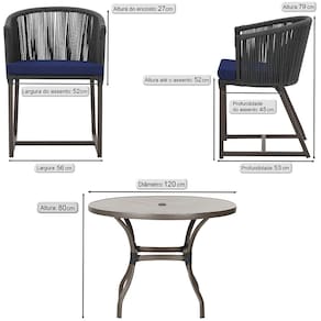 Fotos meramente ilustrativas. Tonalidades podem variar dependendo do monitor. Os objetos que ambientam as Fotos não acompanham o produto. Antes de comprar o seu produto verifique as medidas, o local onde pretende instalar e se necessário contratar o serviço de um profissional qualificado. Produto conhecido como: mesa e cadeiras, Jogo de jantar, Estofado impermeável, Móveis de exterior, Cadeira resistente à água, Cadeira estofada, Cadeira para área externa, Cadeira de jardim, Móveis para varanda, Cadeira durável, Cadeira de alta qualidade, Conforto em Cadeira, Cadeira elegante.