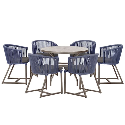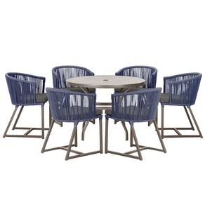 Mesa com 6 Cadeiras de Jantar Roma 120cm e Noronha em Alumínio - Azul