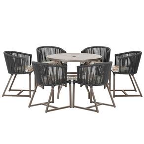 Mesa com 6 Cadeiras de Jantar Roma 120cm e Noronha em Alumínio - Preto