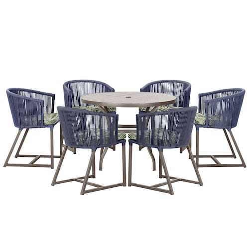 Mesa com 6 Cadeiras de Jantar Roma 120cm e Noronha em Alumínio - Azul